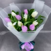 15 тюльпанов: тюльпаны белые и сиреневые/розовые - 15 шт., упаковка  , лента.